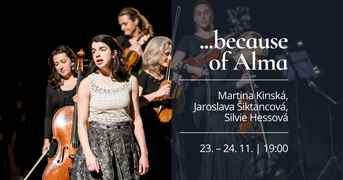 Na scenie spotykają się znakomite muzyczki ze smyczkowego zespołu Alma Ansámbl oraz troje aktorów. Autorką tekstu dramatycznego jest scenarzystka i dramaturżka Martina Kinská, która ma doświadczenie w pracy z podobnymi tematami, a jej scenariusze otrzymały szereg nagród. Rolę Almy gra Antonia Formanová, wnuczka Miloša Formana, jedna z najwybitniejszych aktorek młodego pokolenia.