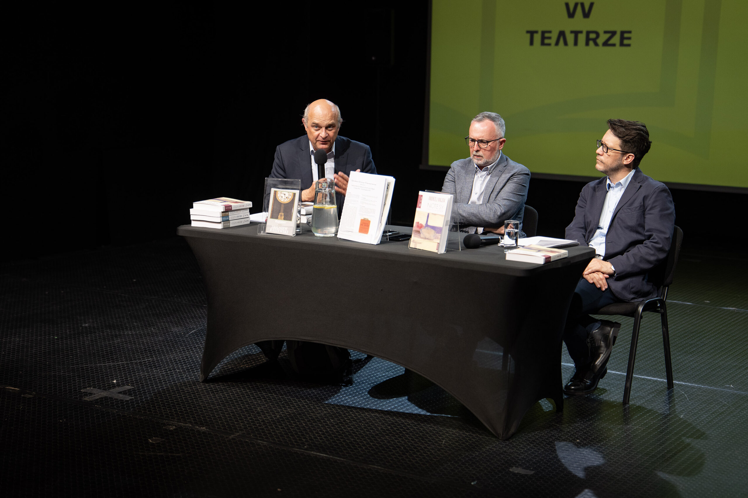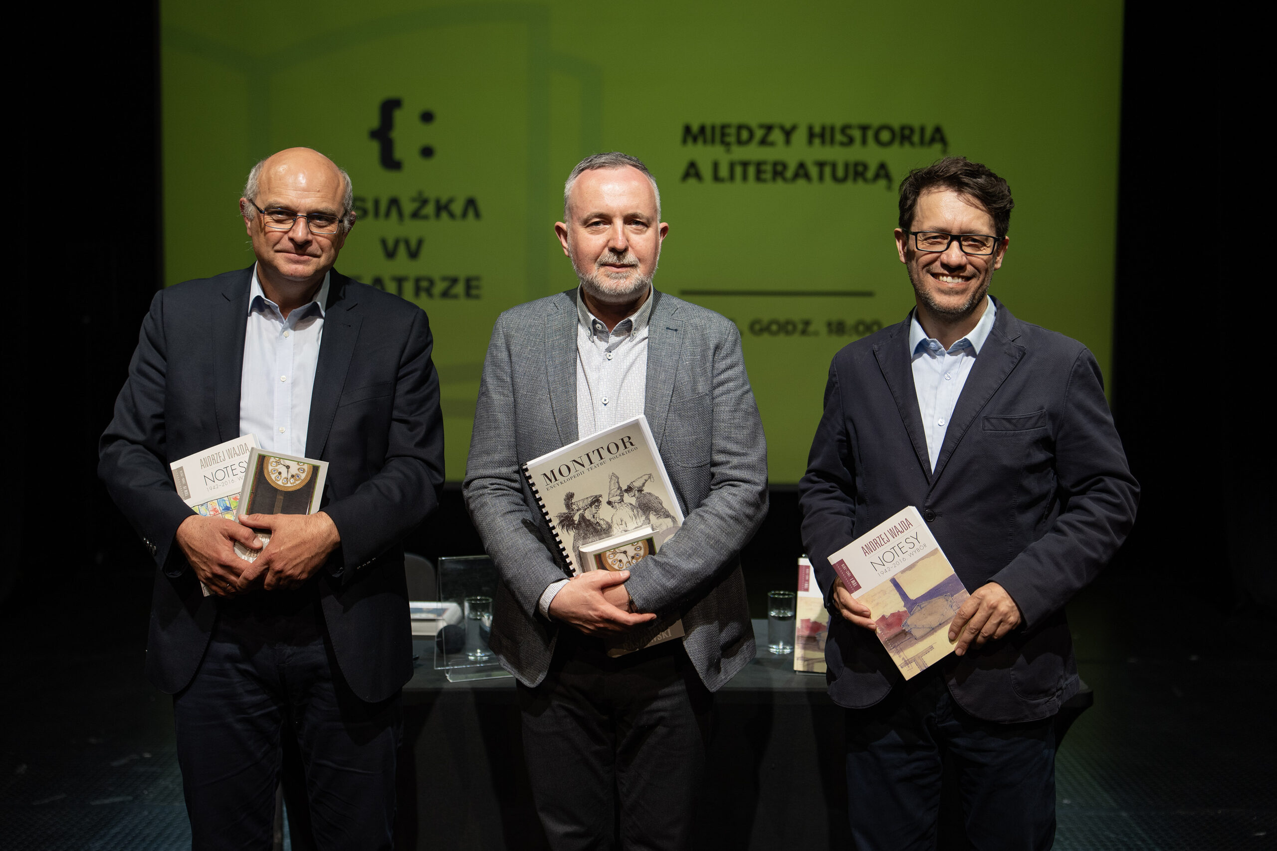 21 maja 2025 r. rozmawialiśmy o diariuszach intelektualistów i artystów: „Raptularzu” Zbigniewa Raszewskiego, „Notesach” Andrzeja Wajdy” i „Kalendarzach” Jerzego Timoszewicza. W spotkaniu w ramach cyklu „Książka w teatrze” udział wzięli: teatrolog, wykładowca warszawskiej AT, dyrektor Muzeum Karykatury im. Eryka Lipińskiego dr Paweł Płoski; literaturoznawca, filozof, krytyk filmowy, wykładowca UKSW dr Mateusz Werner oraz kulturoznawca i literaturoznawca, profesor w Instytucie Kultury Polskiej UW dr hab. Paweł Rodak.