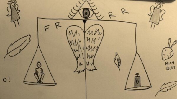 Ilustracja autorstwa Magdaleny Drab ze sztuki „Słabi. Ilustrowany banał teatralny”