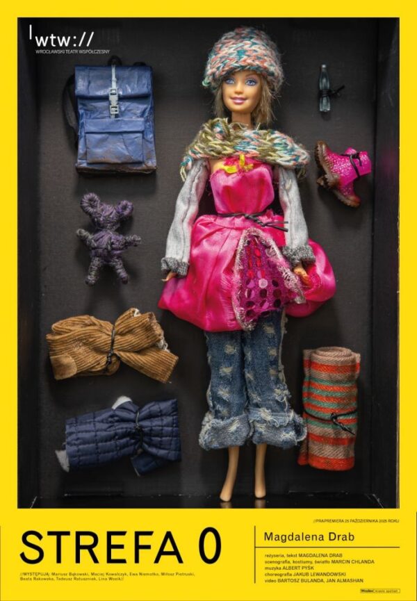 Plakat do spektaklu „Strefa 0”, reż. Magdalena Drab, Wrocławki Teatr Współczesny (autorem zdjęcia na plakacie jest Filip Wierzbicki)